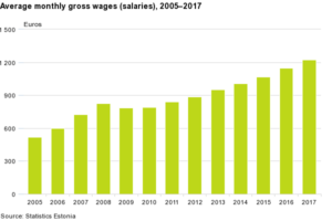Statistics Estoniaによると、2018年3月時点のエストニア平均月収は、1295€。日本円で、16万5000円くらいです。